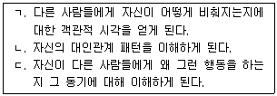 38. 대인간 상호작용을 중시하는 집단상담에서 집단원들이 얻게 되는 통찰에 해당되는 것을 모두 고른 것은?