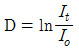 40. 방사선투과사진 농도란 필름의 검은 정도를 정량적으로 나타낸 값이다. 다음 중 농도를 바르게 나타낸 식은? (단, D : 농도, Io : 필름에 입사된 빛의 강도, It : 필름을 투과한 빛의 강도라 한다.)