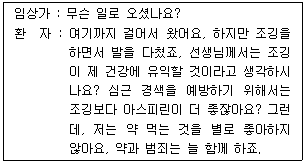 45. 다음 사례에서 환자의 면담을 수행하는 요령과 가장 거리가 먼 것은?
