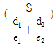 43. 그림과 같이 면적 S[m2]인 평행판 콘덴서의 극판 간에 판과 평행으로 두께 d1[m], d2[m], 유전율 ε1[F/m], ε2[F/m]의 유전체를 삽입하면 정전용량 [F]은?