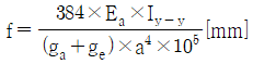 15. 강체가선방식(R-bar)의 최대 이도 f를 구하는 식은? (단, ga+ge : R-bar와 전차선의 중량[N/m], a : R-bar의 지지 경간[m], Ea : 탄성계수[N/mm2], Iy-y : y-y축의 관성모멘트[cm4] 이다.)