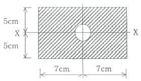 24. 그림과 같은 단면에서 지름 3cm 원을 떼어 버린다면 도심축 X축에 대한 단면2차 모멘트는 약 몇 cm4 인가?