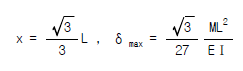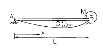 15. 그림과 같은 단순보의 지점 B에 모멘트 M이 작용할 때 보에 최대처짐(δmax)과 δmax가 발생하는 위치 x는? (단, EI는 일정하다.)