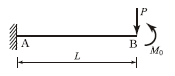9. 캔틸레버 보의 끝 B점에 집중하중 P 와 우력모멘트 Mo가 작용하고 있다. B점에서의 연직변위는 얼마인가? (단, 보의 EI는 일정하다.)