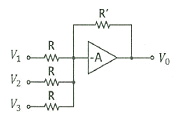 75. 다음 회로에서 출력 전압 V0는? (단, V1, V2, V3는 입력 신호전압이다.)