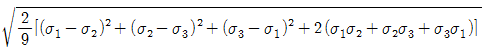 31. 단순인장에 의한 항복이 시작될 때의 응력을 Y라 할 때 Mises 항복 조건에 따른 Y를 올바르게 표현한 식은? (단, σ1, σ2, σ3은 주응력을 의미한다.)