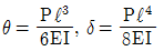 38. 그림과 같은 외팔보의 자유단에 집중하중 P가 작용할 때 자유단에서의 기울기의 최대값(θ)과 처짐의 최대값(δ)은? (단, 보의 굽힘 강성 EI는 일정하고, 자중은 무시한다.)