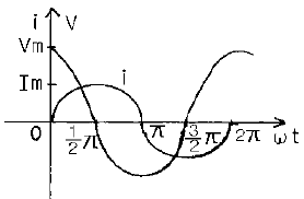 75. 그림은 인덕턴스회로에서 V, i의 관계를 설명하고 있다. 그 특징에 대한 설명으로 옳은 것은?