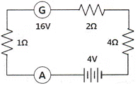 83. 그림에서 G의 발전전압은 16V일 때 전류계 A에 흐르는 전류는?