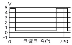 91. 다음 그림은 4행정 가솔린 기관에서 배전기 축이 1회전 하는 동안의 파형 변화 이다. 이 파형은 어떤 센서의 출력 파형인가?