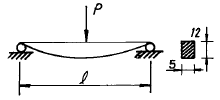 11. 단순지지보에서 길이는 5m, 중앙에서 집중하중 P가 작용 할때 최대처짐은 몇 cm 인가? (단, 보의 단면(bxh)은 5cmx12cm, 탄성계수 E= 210 GPa, P = 25 kN으로 한다.)