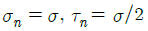 15. 그림과 같은 1축 응력(응력치: σ, σ는 y축 방향)상태에서 재료의 Z-Z단면(x축과 45° 반시계 방향 경사)에 생기는 수직응력 σn, 전단응력 Tn의 값은?