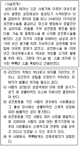6. 강간죄에 관한 최근 판례(2009도3580)의 내용 중 옳지 않은 것은 모두 몇 개인가?