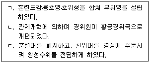 1. 우리나라 구한말 경호조직의 변천에 관한 내용이다. 일어난 순서대로 나열된 것은?