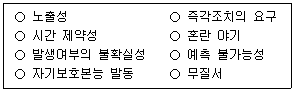 30. 우발상황의 특성으로 옳은 것은 모두 몇 개인가?