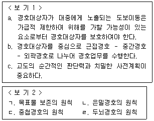 7. 경호의 원칙에 관한 설명이다. <보기 1>과 <보기 2>의 내용이 옳게 연결된 것은?