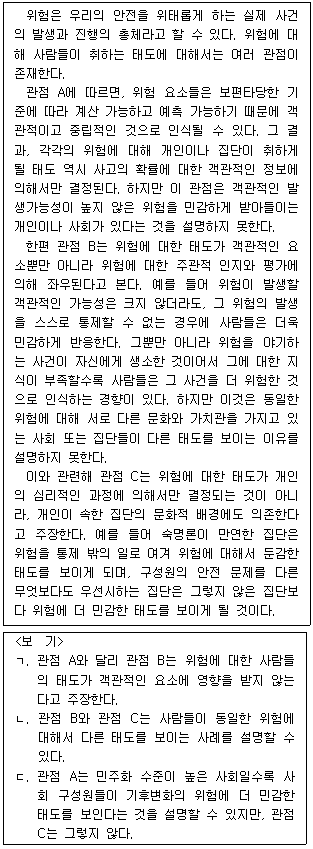 16. 다음 글의 관점 A~C에 대한 평가로 적절한 것만을 <보기>에서 모두 고르면?