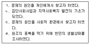 4. 19세기 인보관운동(settlement house movement)에 대한 설명으로 옳은 것만을 모두 고르면?