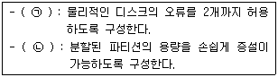 6. 4개의 하드디스크를 이용하여 아래의 상황에 맞게 디스크를 구성하려고 한다. 다음 ( 괄호 ) 안에 들어갈 내용으로 알맞은 것은?