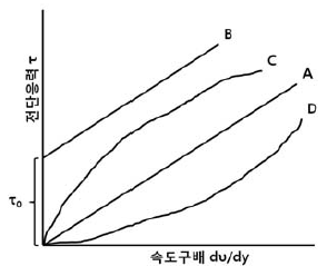83. 그림에서 뉴턴 유체(Newtonian fluid)를 나타내는 것은?