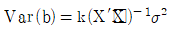 79. 독립변수가 k개인 중회귀모형 y=Xβ+ε에서 회귀계수벡터 β의 추정량 b의 분산-공분산 행렬 Var(b)은? (단, Var(ε)=σ2I)