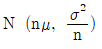 84. 평균이 μ, 분산이 σ2인 모집단에서 크기 n의 임의표본을 반복추출하는 경우, n이 크면 중심극한정리에 의하여 표본합의 분포는 정규분포를 수렴한다. 이때 정규분포의 형태는?