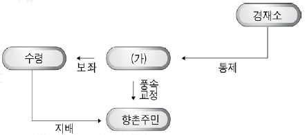 14. 그림은 어느 시대 향촌 사회의 지배 구조를 도식화한 것이다. (가)의 기능으로 옳은 것은? [3점]