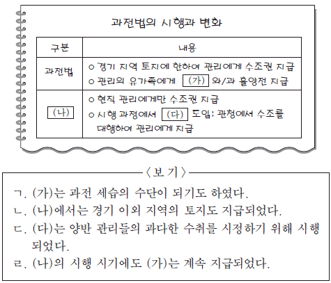 18. (가)~(라) 시기의 사실로 옳은 것만을 <보기>에서 있는 대로 고른 것은? [3점]