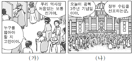 12. (가) 시기 이후 (나) 방략에 따라 대한민국 임시정부가 전개한 활동으로 옳은 것은? [3점]