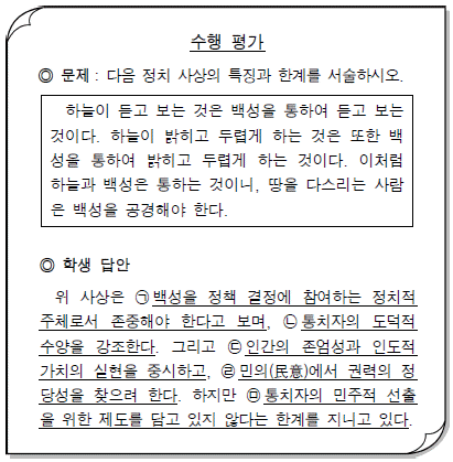 15. 그림은 수행 평가 문제와 학생 답안이다. 학생 답안의 (ㄱ)~ (ㅁ)중 옳지 않은 것은? [3점]