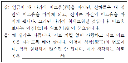 7. 다음은 고대 중국 사상가 갑, 을의 가상 대화이다. (ㄱ)에 들어갈 내용으로 옳은 것은? [3점]