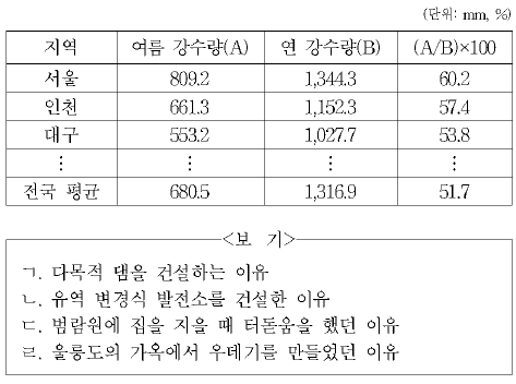 13. 표를 통해 탐구할 수 있는 주제로 적절한 것을 <보기>에서 모두 고른 것은?
