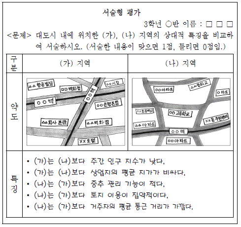 18. 자료는 도시 단원에 대한 서술형 평가의 일부이다. 학생이 얻은 점수로 옳은 것은? [3점]