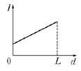 도체막대가 P에서 Q까지 이동하는 동안 전류계에 흐르는 전류의 세기 I 를 도체막대가 이동한 거리 d 에 따라 나타낸 그래프로 가장 적절한 것은? (단, 온도에 따른 저항 변화, 도체막대의 이동에 의한 유도전류는 무시하고, 도체막대는 금속막대와 수직인 상태를 유지한다.)
