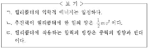 5. 그림과 같이 높이 h1에서 제자리 비행하던 질량 m인 헬리콥터가 연직 위로 등가속도 운동하여 높이가 h2인 순간 속력 v가 되었다.
