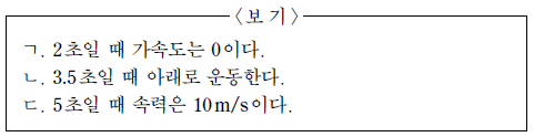 이 물체의 운동에 대한 설명으로 옳은 것만을 <보기>에서 있는 대로 고른 것은? (단, 중력 가속도는 10m/s2이고, 줄의 질량, 모든 마찰은 무시한다.) [3점]