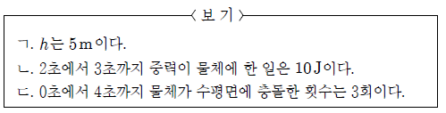 이에 대한 옳은 설명을 <보기>에서 모두 고른 것은? (단, 공기 저항과 물체의 크기는 무시한다.) [3점]