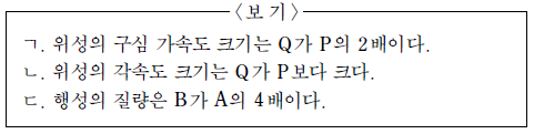 P의 공전 주기가 Q의 공전 주기의 2배일 때, 이에 대한 설명으로 옳은 것만을 <보기>에서 있는 대로 고른 것은? [3점]