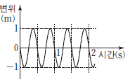 이 순간부터 x=2m인 위치에서 파동의 변위를 시간에 따라 나타낸 것으로 가장 적절한 것은? [3점]