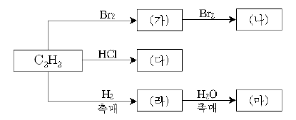 이에 대한 설명으로 옳지 않은 것은? (단, (가), (다), (라)는 불포화 탄화수소이다.) [3점]