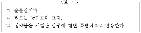 시험관에 모아진 기체에 대한 설명으로 옳은 것을 <보기>에서 모두 고른 것은? (단, 물의 증발은 무시한다.) [3점]