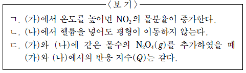 온도 T, 1 기압에서 (가)~(다)에 대한 설명으로 옳은 것만을 <보기>에서 있는 대로 고른 것은? [3점]