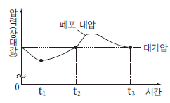 12. 그림은 평상 시 1회 호흡하는 동안 폐포 내압의 변화를 나타낸 것이다.