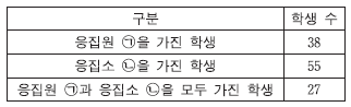 13. 표는 100 명의 학생 집단을 대상으로 ABO식 혈액형에 대한 응집원 ㉠과 응집소 ㉡의 유무를 조사한 것이다. 이 집단에는 A형, B형, AB형, O형이 모두 있다.