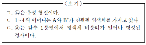이에 대한 설명으로 옳은 것을 <보기>에서 모두 고른 것은? (단, 돌연변이와 교차는 고려하지 않는다.) [3점]