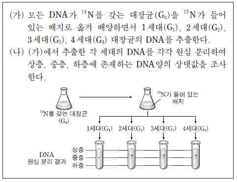 5. 다음은 DNA의 반보존적 복제를 증명하는 실험 과정이다.
