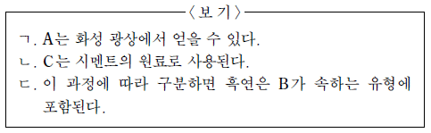 9. 그림은 자철석, 석탄, 석회석을 특징에 따라 구분하는 과정을 나타낸 것이다.