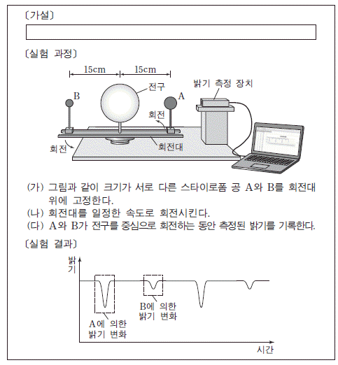 6. 다음은 영희가 외계 행성 탐사 방법을 이해하기 위해 가설을 세우고 수행한 실험이다.