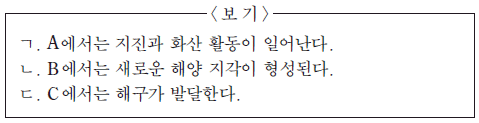 세 지점 A, B, C에 대한 설명으로 옳은 것만을 <보기>에서 있는 대로 고른 것은?
