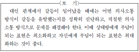 3. 대화 내용과 <보기>를 참고할 때, 창완의 마지막 말에 대한 소연의 대답으로 가장 적절한 것은?(4번 공통지문 문제)